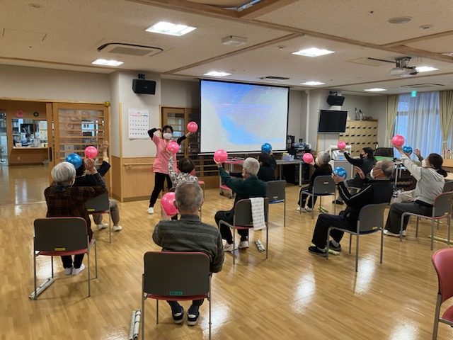 皆さんで楽しめるように簡単な体操や、レクリエーションもおこなっております